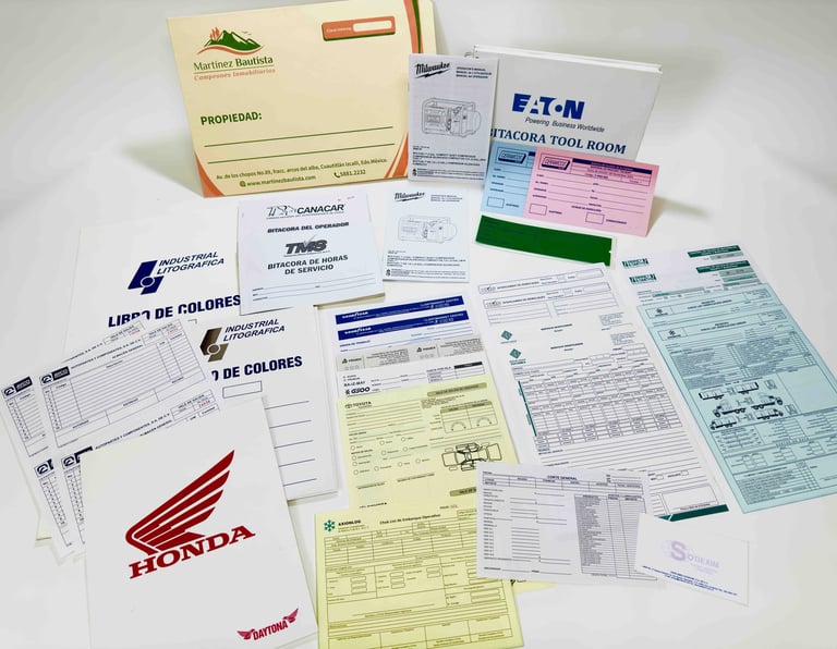 Instructivos, Hojas Membretadas, Folders, Tarjetas, Remisiones, Pólizas, Notas Credito, Notas de Cargo, Movimientos de almacen, Formatos de Control entre muchos más.